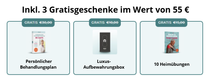 Für einen Bruchteil der Kosten einer einzelnen Massagesitzung kannst du immer wieder Entspannung und Linderung genießen – ganz bequem in deinem eigenen Zuhause.